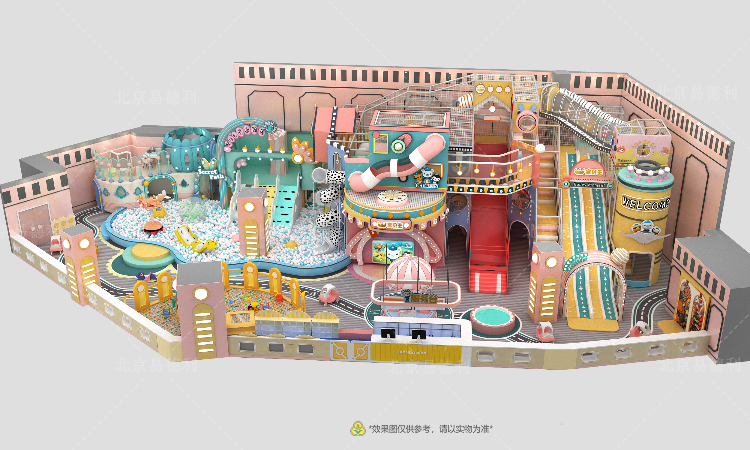 易德利湖南常德萬達寶貝王室內(nèi)兒童樂園從選品、溝通、設(shè)計、生產(chǎn)、安裝 到 售后一體完落地。