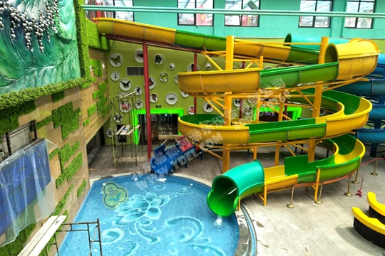 獨(dú)具風(fēng)格,以部落主題展現(xiàn)的水上項(xiàng)目,栩栩如生的部落人物造型,夸張的巫師頭像,搭配亭臺(tái)滑梯,回環(huán)相....