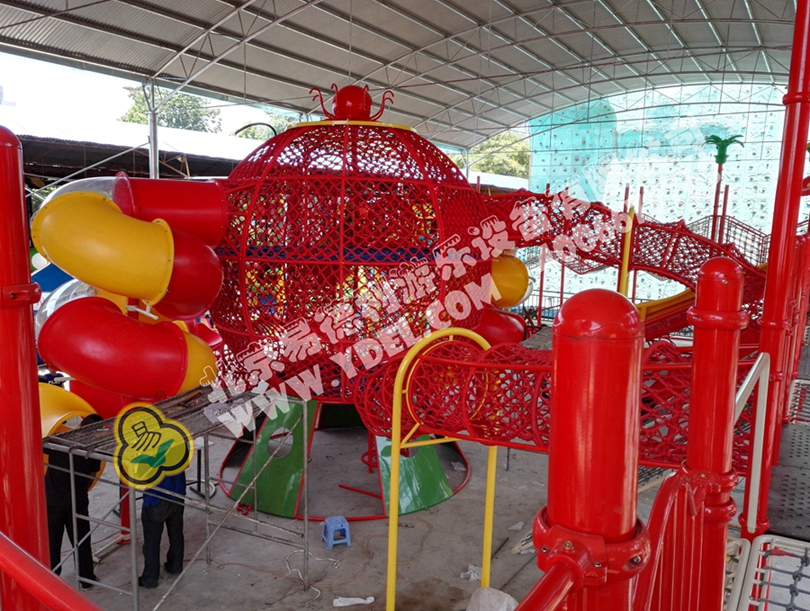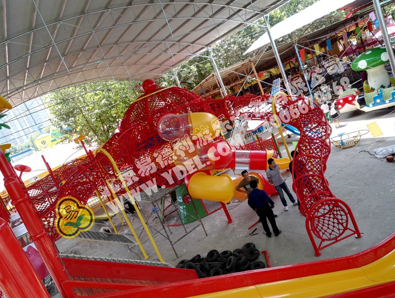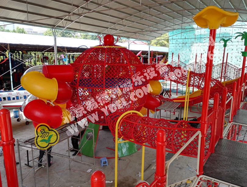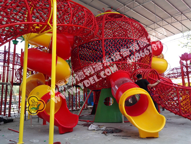 大型的造型攀爬網龍,采用全手工編織網繩打造,以章魚形象為主體,結合攀爬、翻越、滑梯等功能,不僅造型讓人眼前一亮,整體獨具特色,功能兼具冒險和挑戰性,讓孩子得到充分鍛煉。
