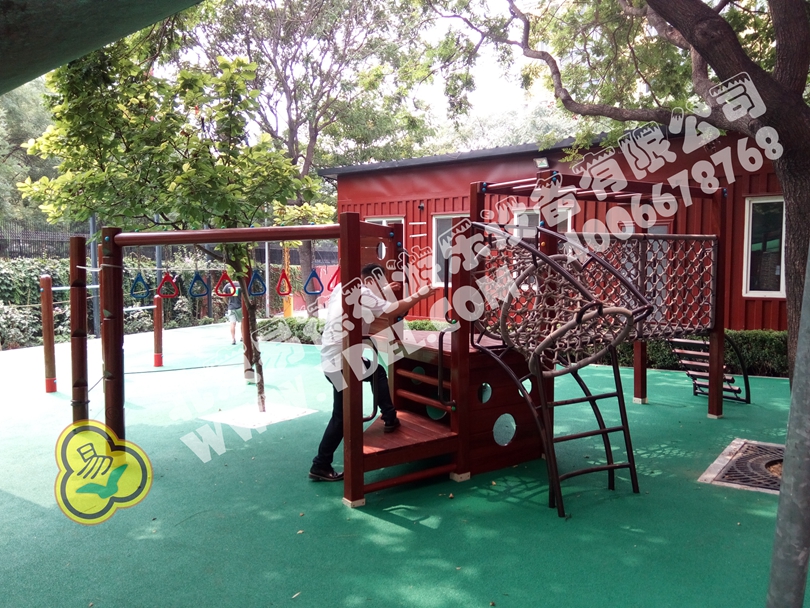 德國使館學校游樂設備根據游樂設備專業設計深化,把孩子和老師的設想真正落于實地,集合攀、爬、滑更是加入一定難度吊環單桿設備,充分達到孩子娛樂又鍛煉的特色。