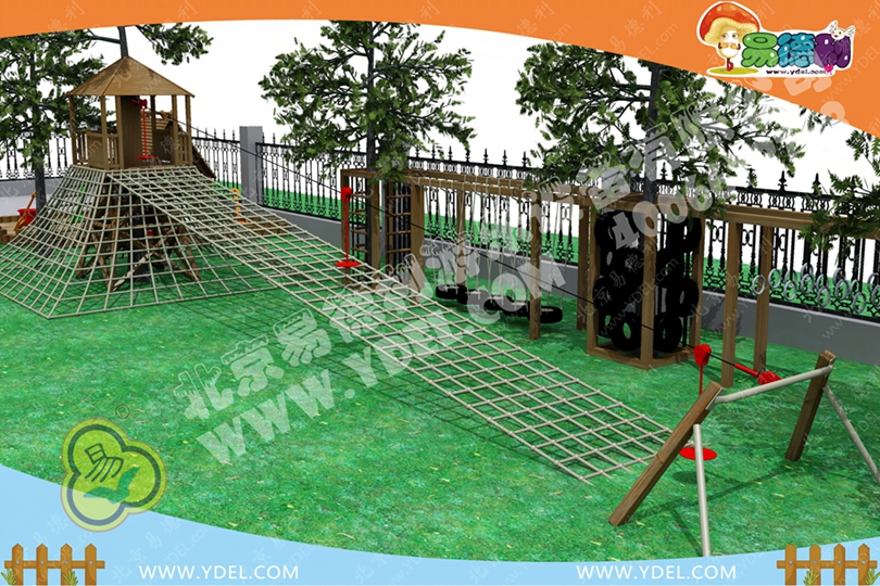 滑索在幼兒園越來越受歡迎,圍著樹做個網繩樹屋,從高臺一溜而下,沙池小樹屋,玩玩沙爬上小屋休息休息,很是愜意;戶外小屋收納柜,色彩鮮艷,收納方便,孩子們新奇地爬進爬出。