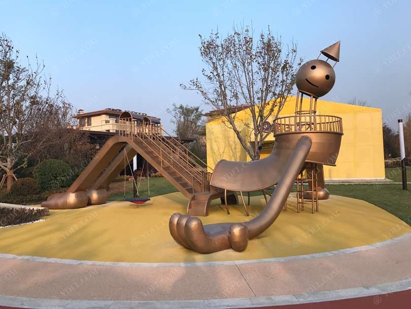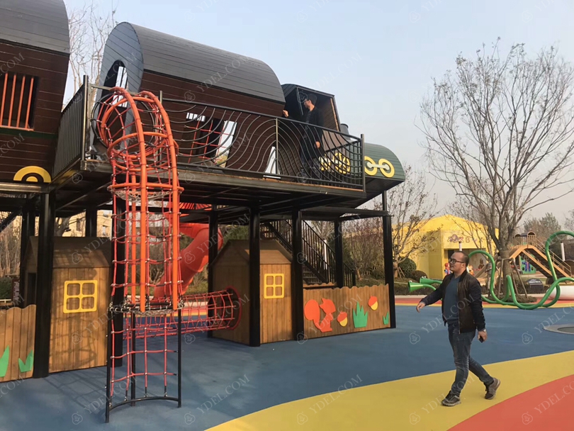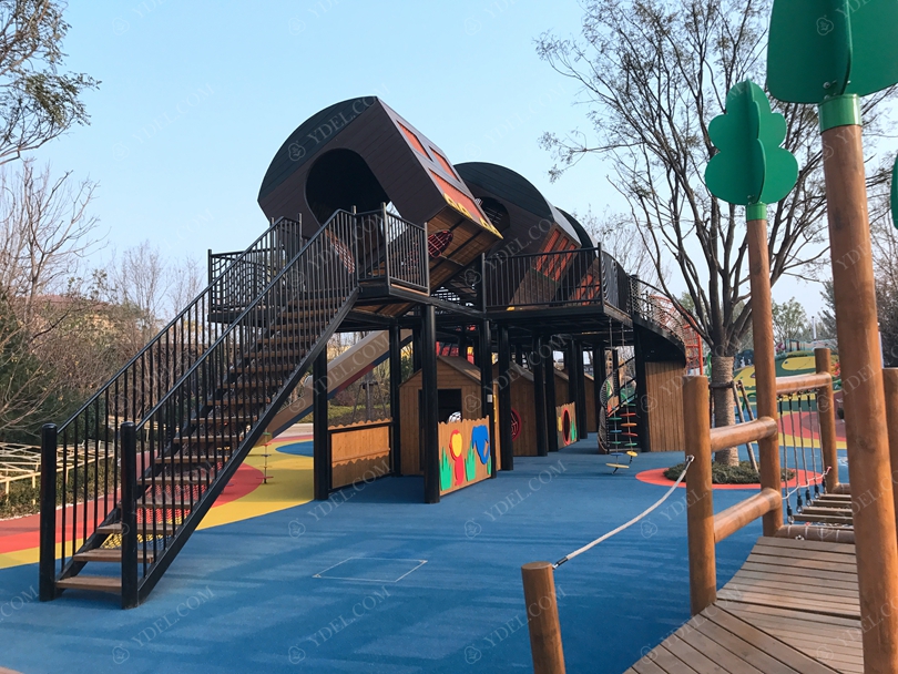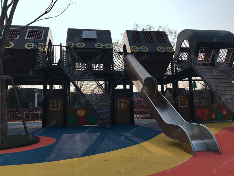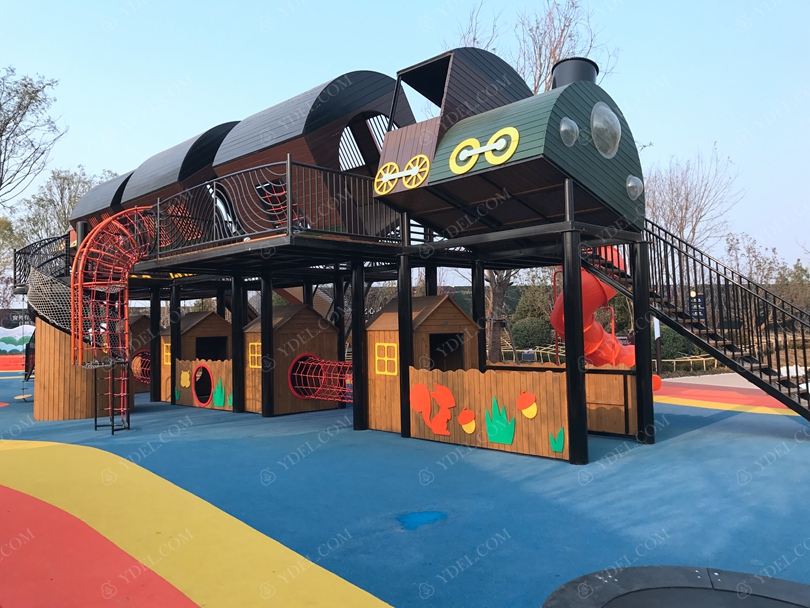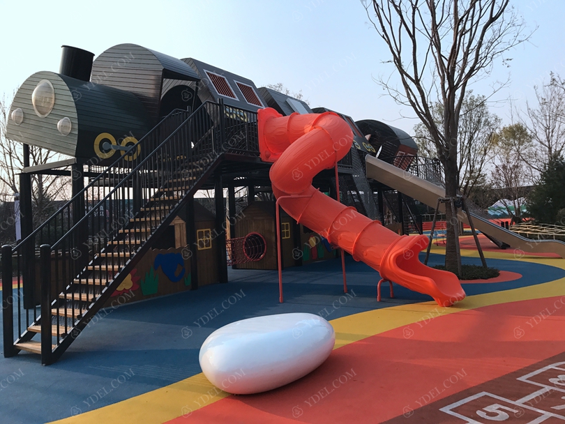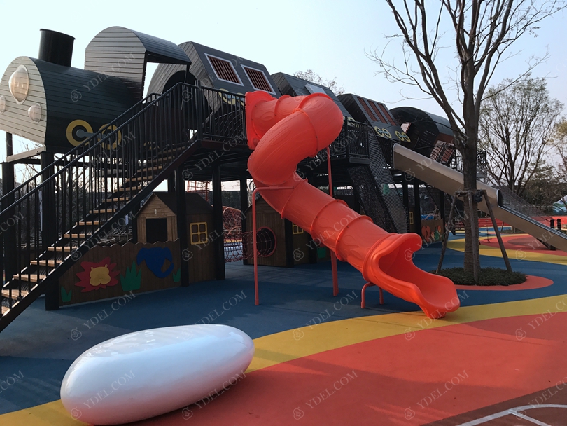 新穎的火車造型滑梯富含多游樂功能,微地形攀爬設施,創意造型滑梯等