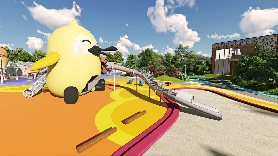 大地鄉野探索樂園,是大地風景文旅集團旗下大地鄉居全新研發的自有鄉村親子品牌產品,產品研發的初衷是希望為父母和孩子們提供一個與眾不同的家庭樂園,更令人流連忘返的場所。圍繞無動力樂園和萌寵互動,項目打造了“夢想天空”、“愛的部落”和“歡樂水寨”等原創親子板塊,以及眾多獨一無二的游樂項目。圍繞珍稀濕地生物“勺嘴鷸”,樂園打造了“小勺子”主題IP形象;設計基調以羽毛的白色為主,融入國潮、現代和簡約的設計元素,結合濕地文化、動物互動、戶外拓展等核心體驗內容。