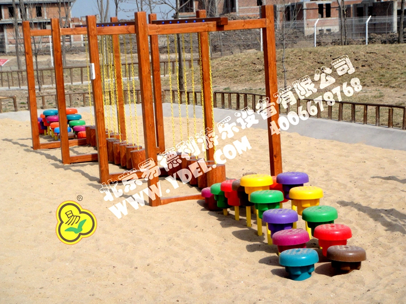 全木質戶外拓展設備,功能齊全,趣味性和鍛煉性并舉。吊環、攀爬,曲環相繞網龍,障礙攀爬,新奇五邊錐形爬網,各種功能拓展項目就在易德利。