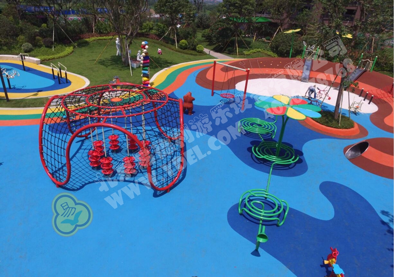 這個美麗、趣味性十足的兒童游樂場,面積1000平方米。從整個場地的地勢變化、顏色搭配以及色彩選用,易德利設(shè)計師都力求能夠相互呼應(yīng),只為帶給孩子更好的情感和空間體驗,并 激發(fā)他們的天性和潛能。