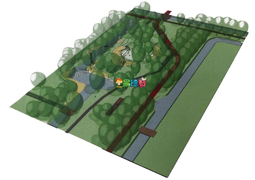 松或是舉行家庭小聚會。為了充分利用這個區域以及增強公園的可達性,自然人行道、教育性道路、跑道以及冒險道在入口處以及整個區域