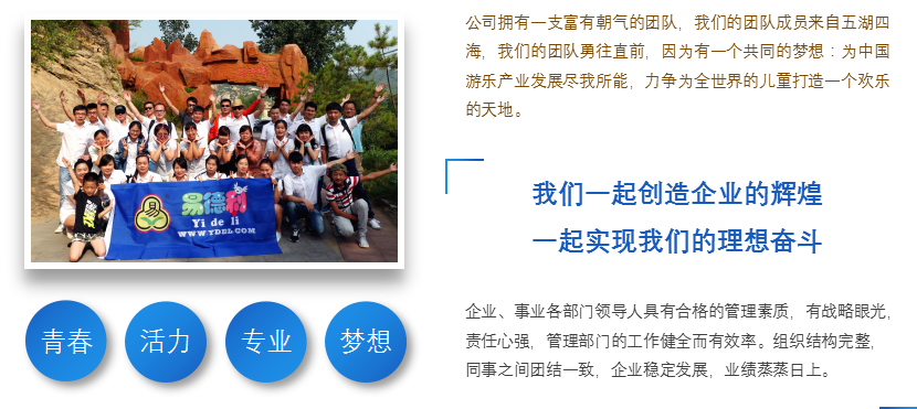 北京易德利游樂設備有限公司歷經二十多年的發展,現有管理、設計、技術等各類專業員工,業已成為華北地區淘氣堡游樂設備產業的知名企業,國內淘氣堡游樂設備企業佼佼者,是集設計、安裝、售后服務及物流配送為一體的綜合性