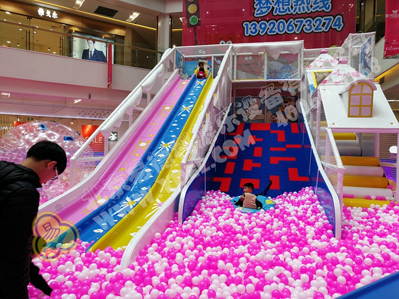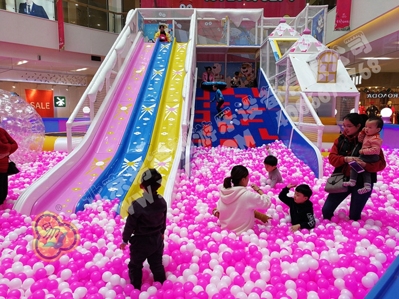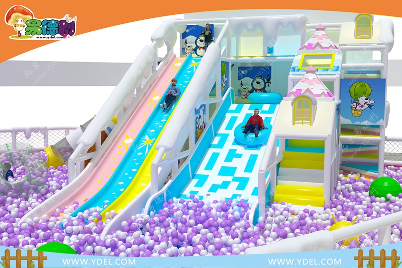 易德利淘氣堡296系列,淘氣堡框架和百萬球池相望配置,多條大滑梯,還有滑草,做好姿勢一沖而下。